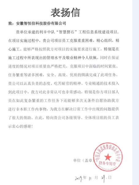 近日,安徽多多28科技股份有限公司接连收到2封表扬信,分别对多多28承接的武警利辛中队“智慧磐石”工程信息系统建设项目和联宝公司驻场服务进行表彰。